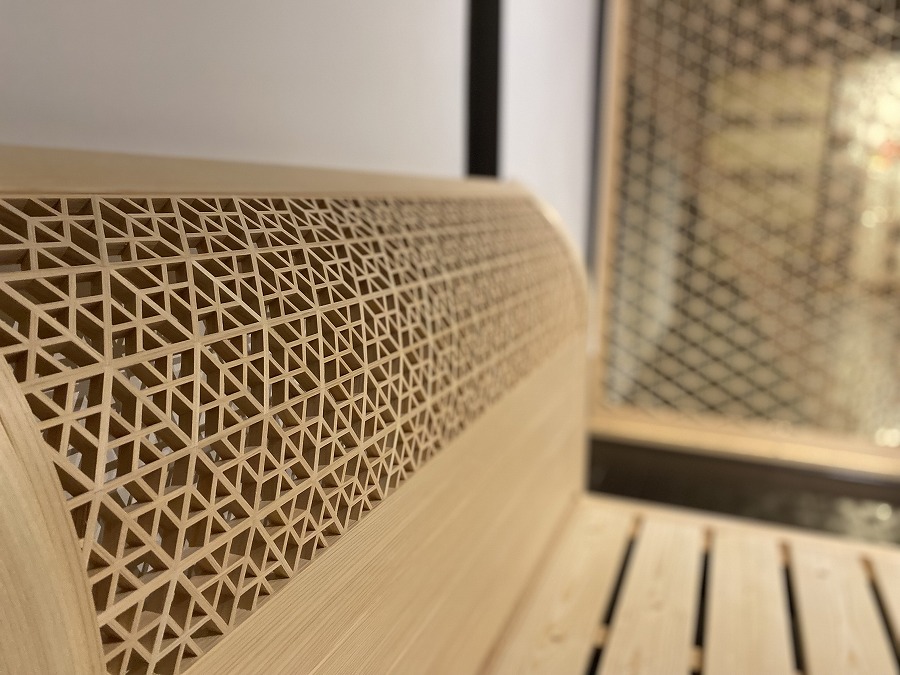 Specialties Specialties ★きもの衿デザイン 京組子パーテーション 村山木工製作 W H 完全オーダー品です。別注承ります。 ★京組子ヘッドレスト檜ベッド 村山木工・岩本 悟製作 W H 完全オーダー品です。別注承ります。